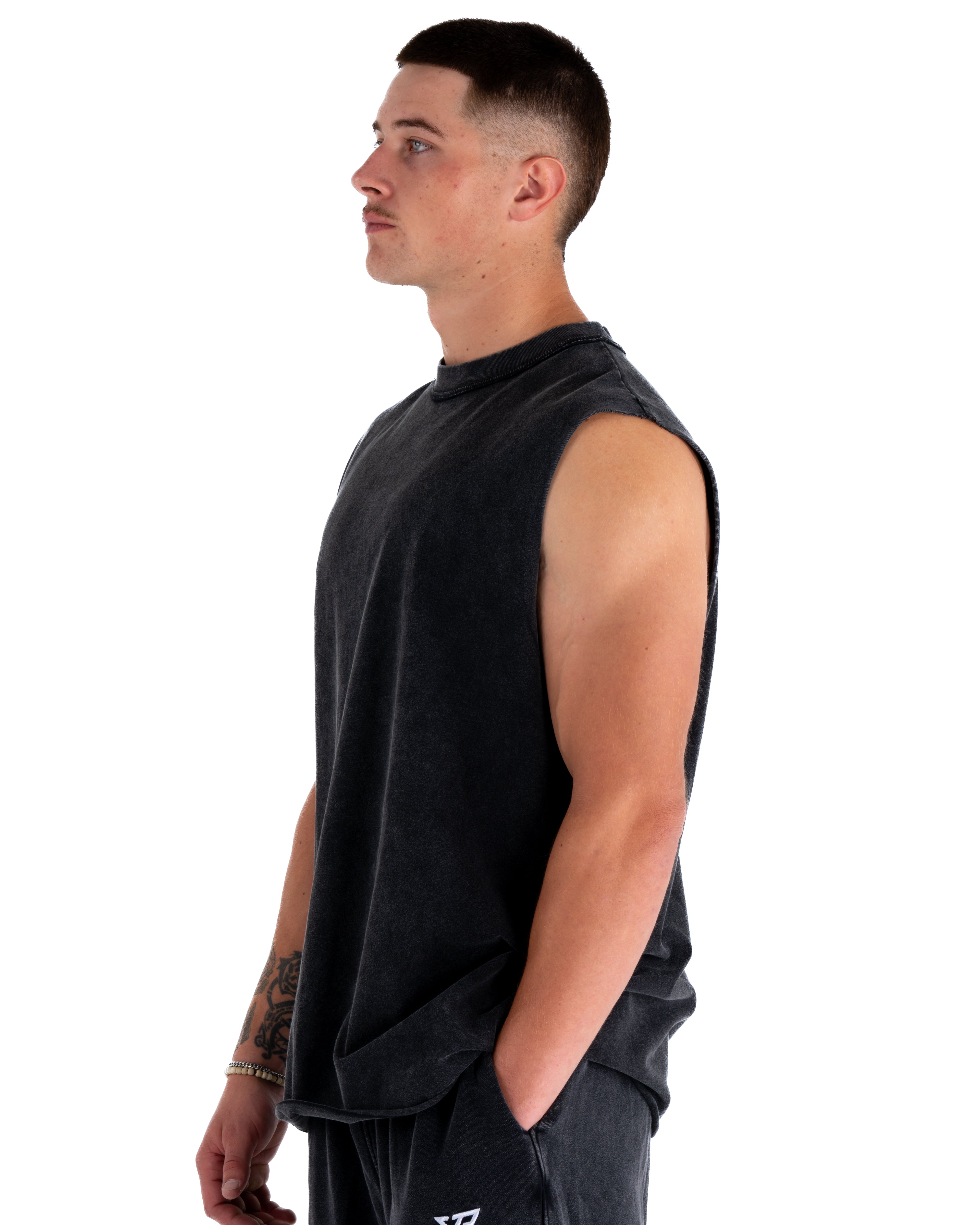 KTP ACID WASH SINGLET - BLACK