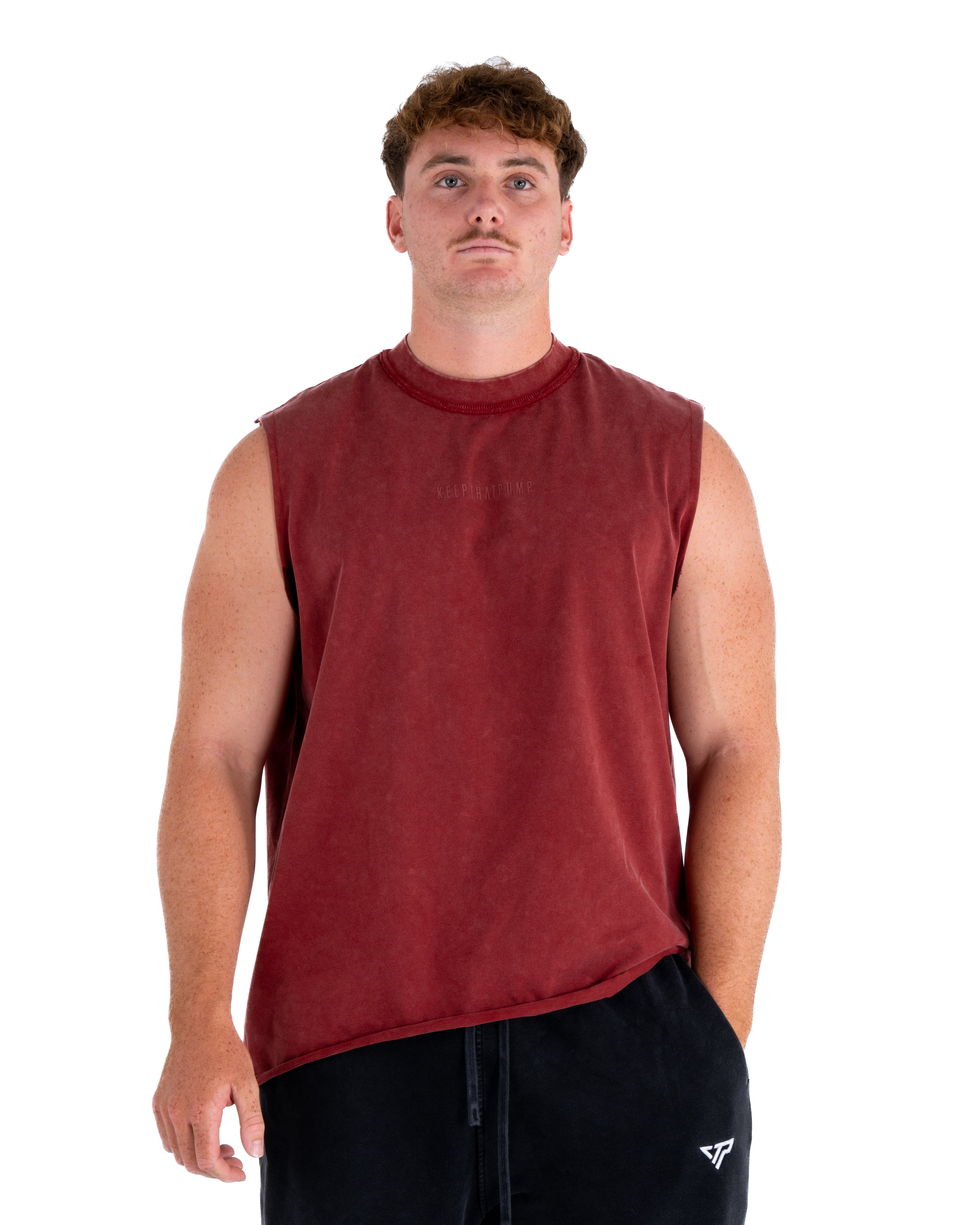 KTP ACID WASH SINGLET - DARK RED